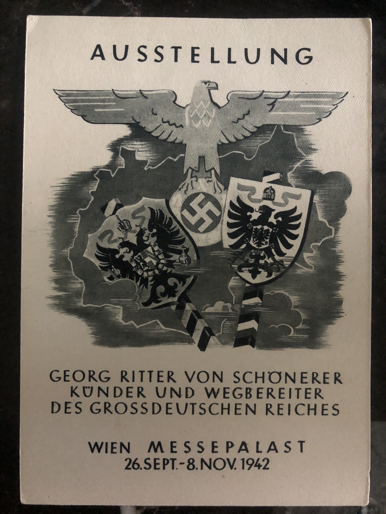 Up for auction is a beautiful Propaganda postcard postal cover , From Vienna Germany . Postcard Depicts fair palaceGeorg Ritter Von Schönerer