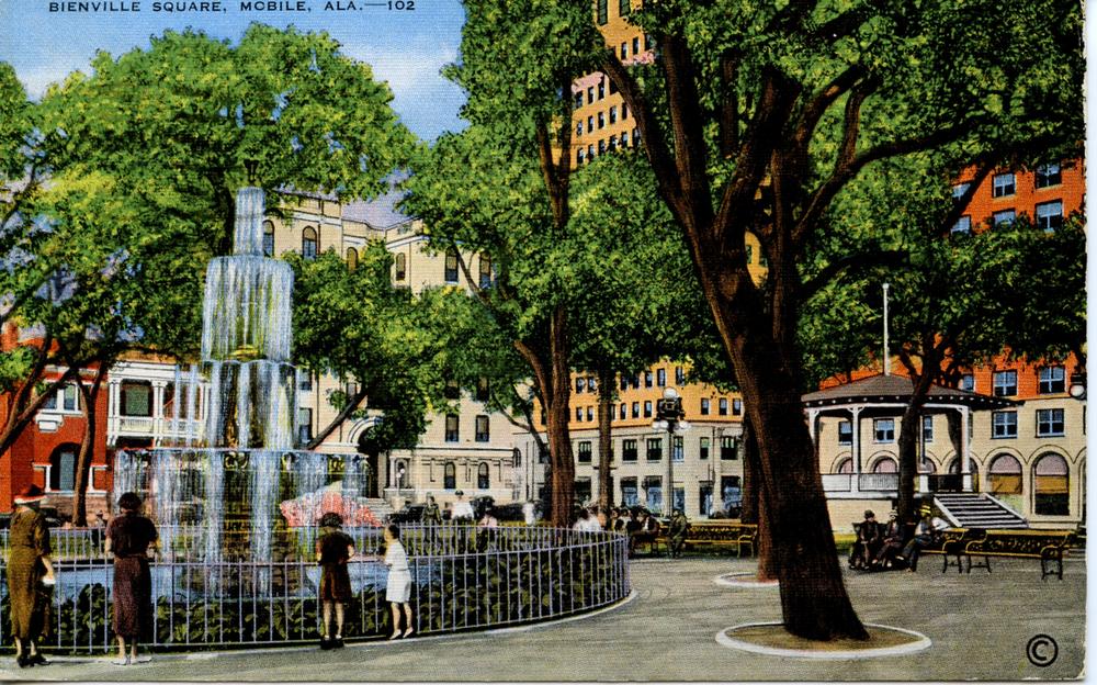 1949 Bienville Square MOBILE AL Old Linen Postcard