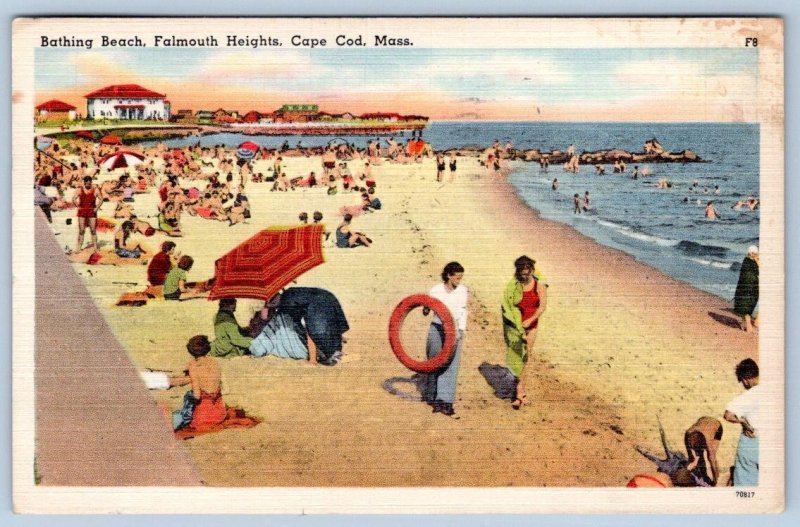 1949 FALMOUTH HEIGHTS CAPE COD MASSACHUSETTS BATHING BEACH LINEN POSTCARD