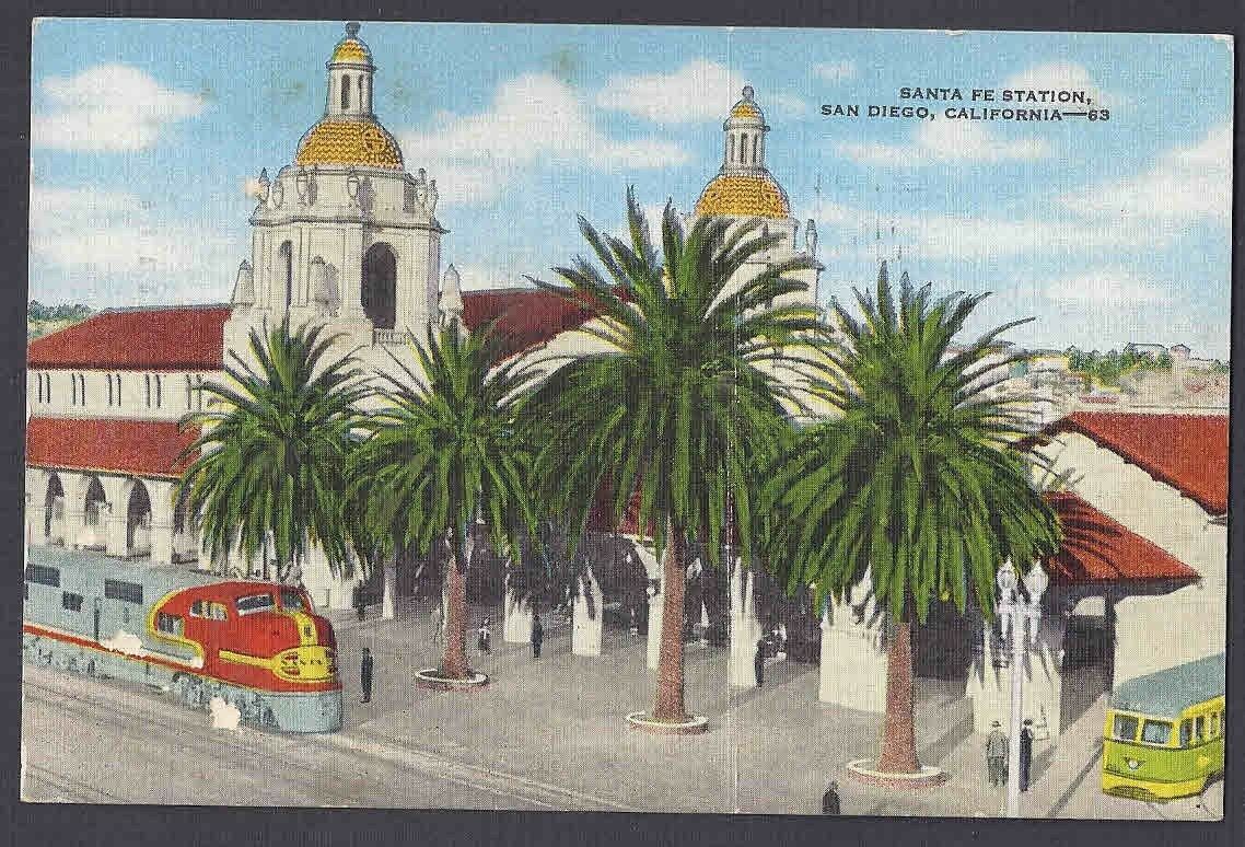 1950 POST CARD SANTA FE STATION SAN DIEGO CA