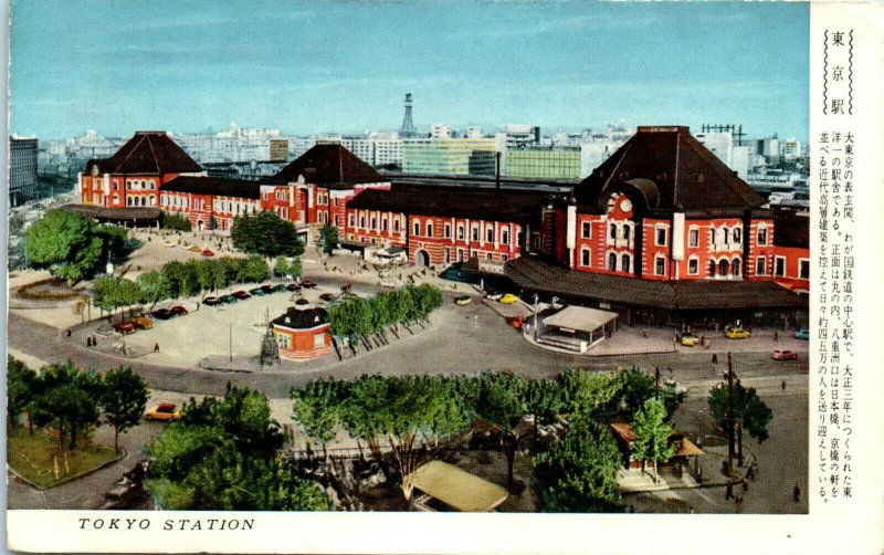 1950s Tokyo Railroad Station Elevated View Tokyo Japan Postcard