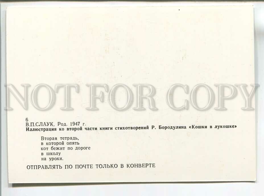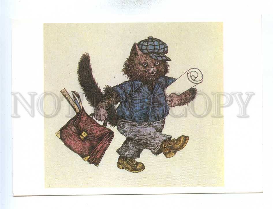 Russia Dressed Cat by Slauk Old Postcard Description: >>> Age: Original old postcard 1990 year >>> Approx.Size: 6X4 inches (15X10 cm) >>> Publisher: Sovetskiy Hudojnik USSR Russia >>> SERIES# Illustrati ... Read More