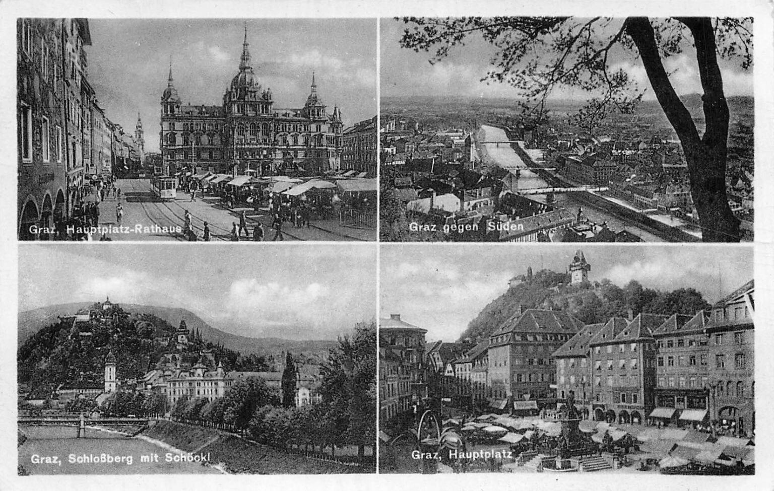 1954 Graz Austria Multi-View Postcard Hauptplatz Schlossberg Strohschneider