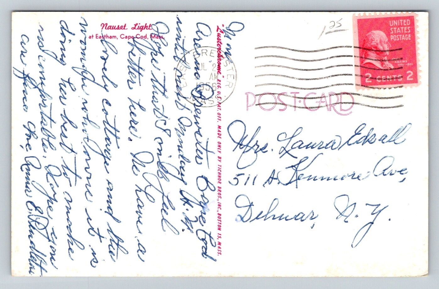 1956 Nauset Lighthouse Eastham Cape Cod Massachusetts Postcard