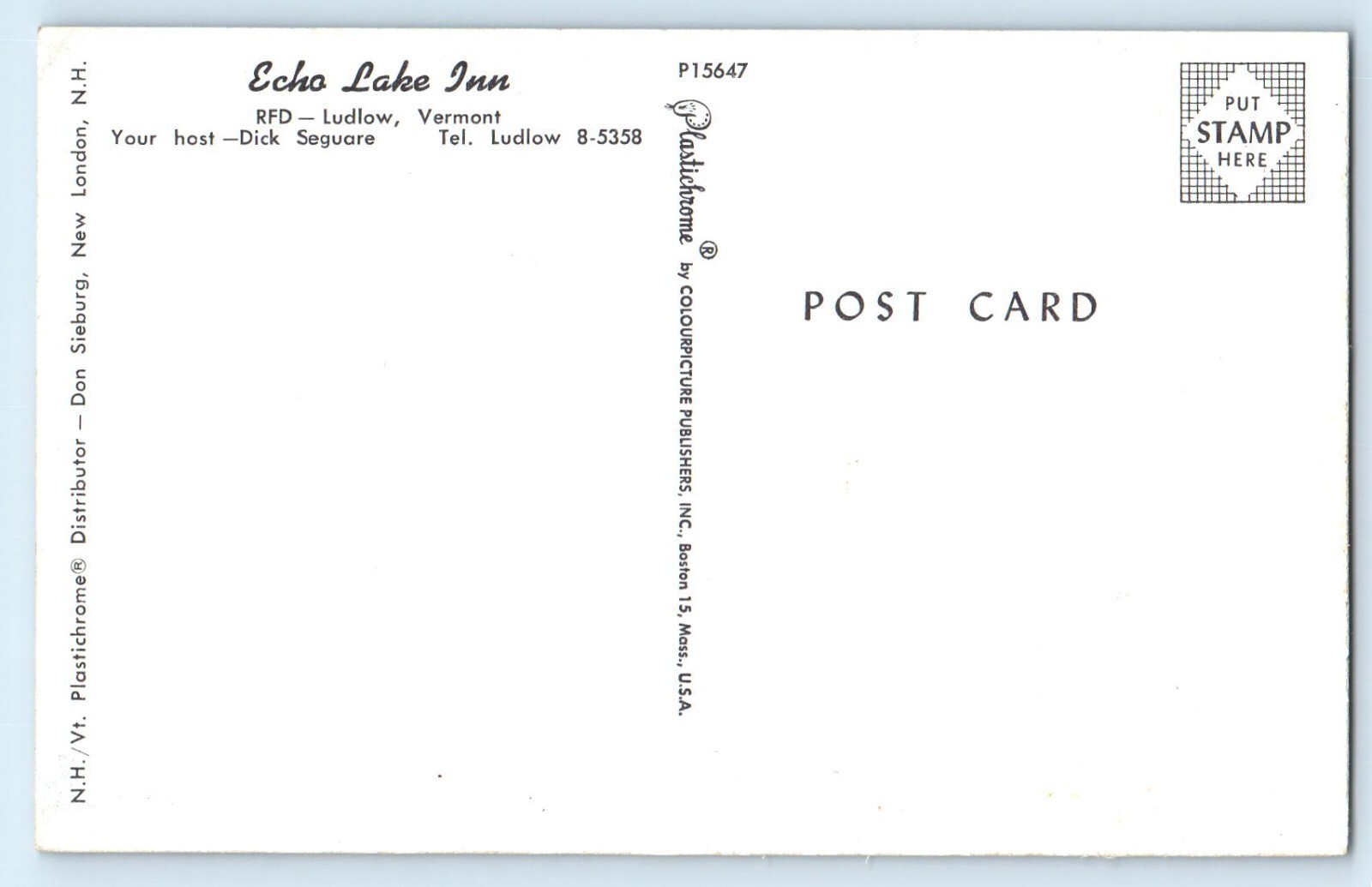 1960 Ludlow Vermont VT Postcard Echo Lake Inn RFD Your Host Dick Seguare House