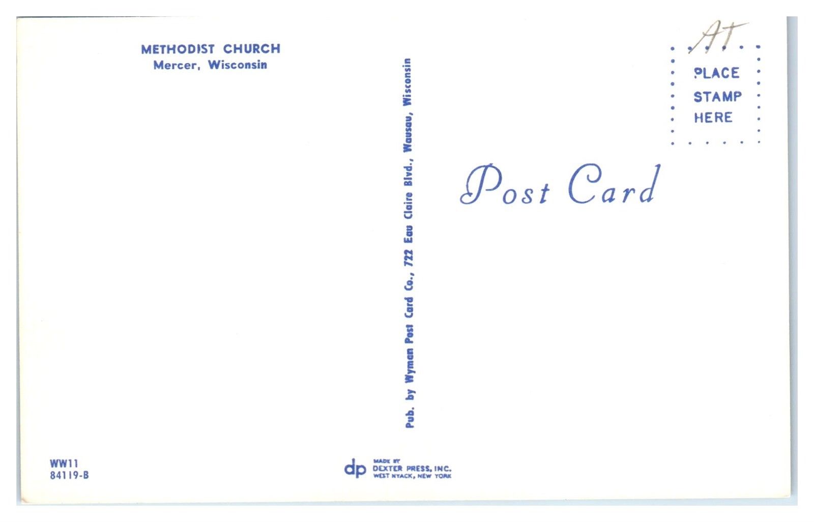 I have for sale one 1960s/70s Methodist Church, Mercer, WI Postcard.