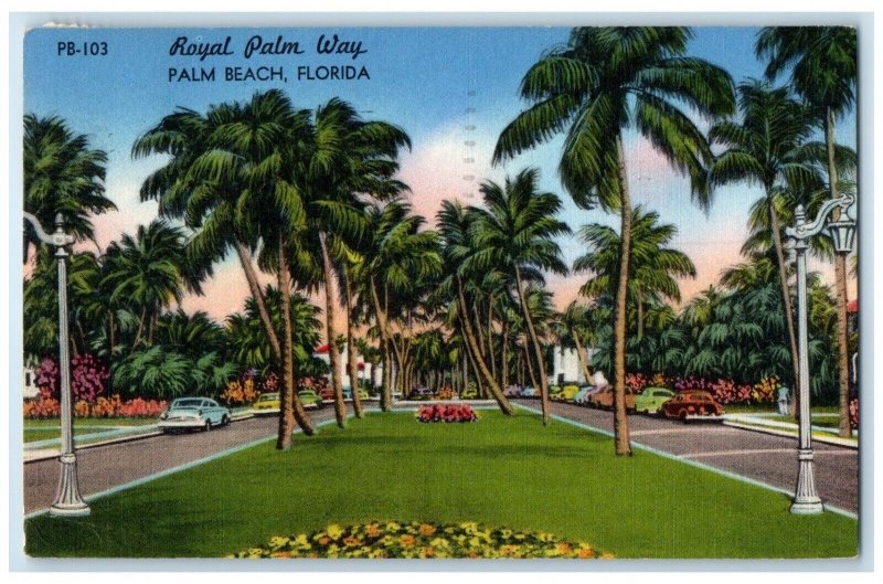 1964 Royal Palm Way Street Road Pine Trees Palm Beach Florida Vintage Postcard