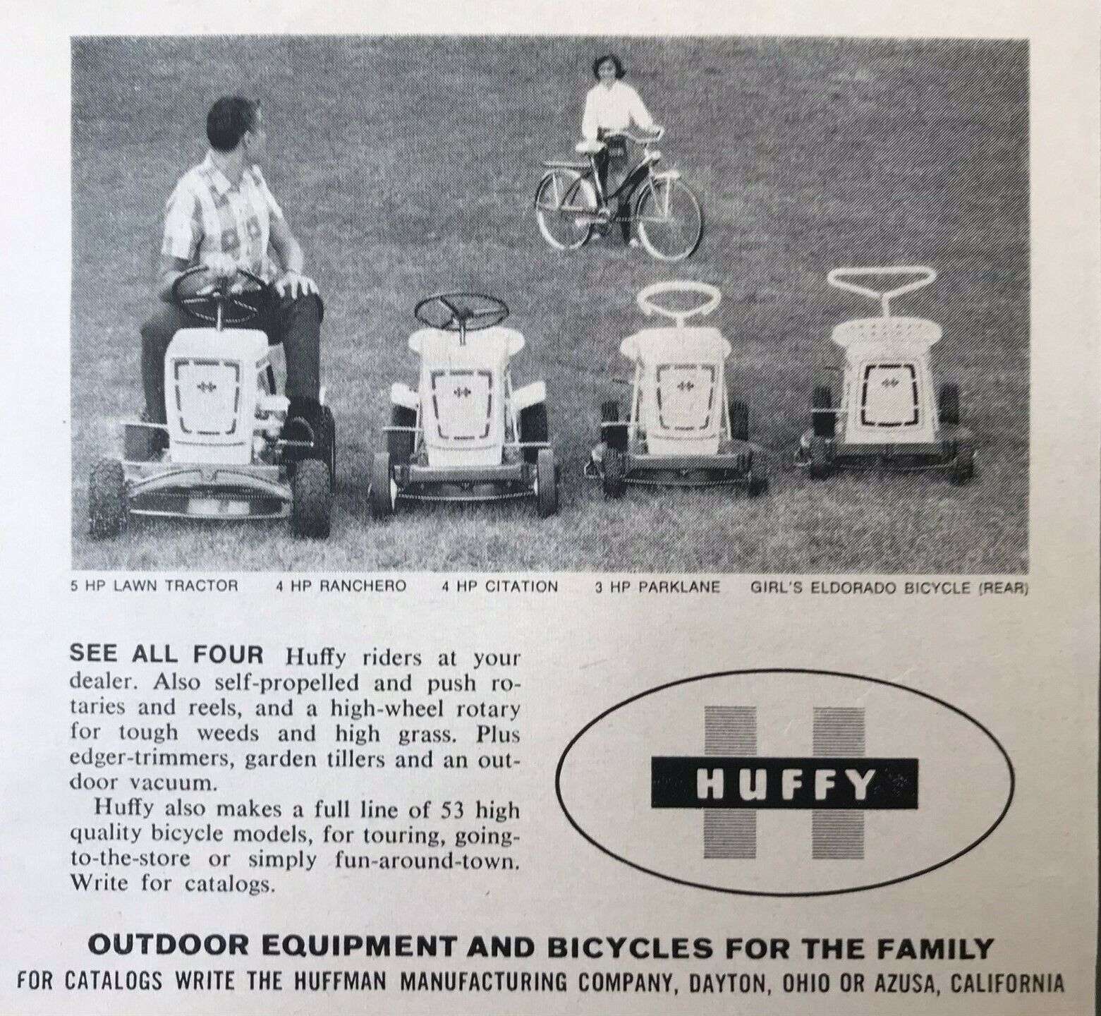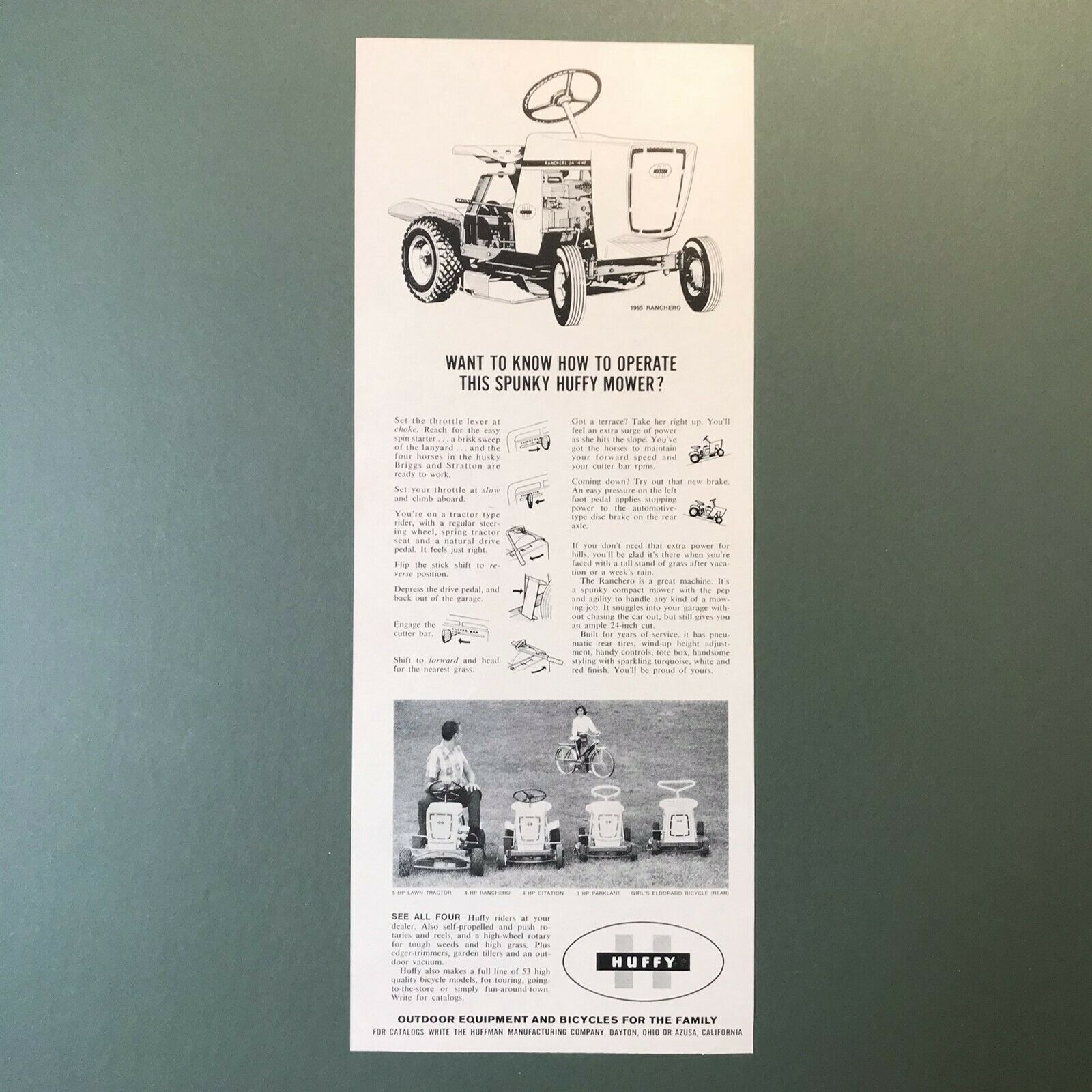 1965 Huffy Mowers Original Print Ad 2P1-4