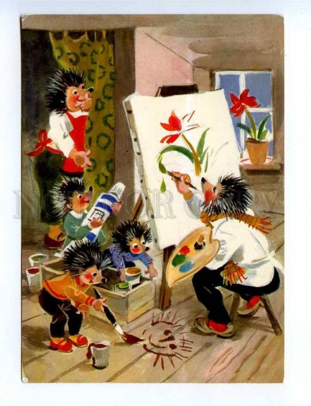 196870 dressed hedgehogs as painter old postcard