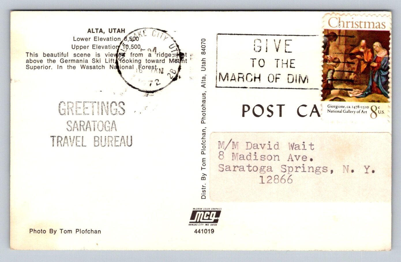 1972 Alta Utah Postcard
