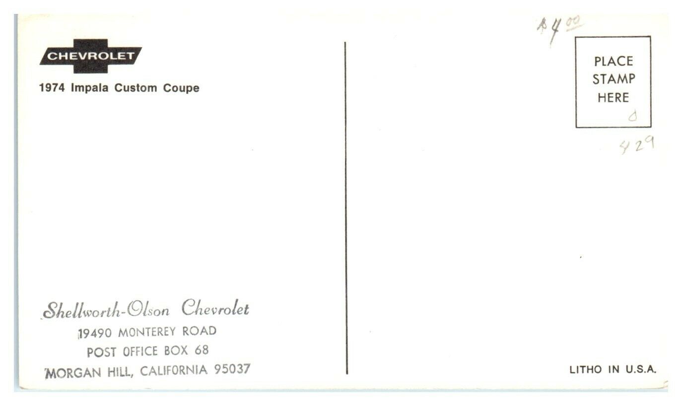 I have for sale one 1974 Chevrolet Impala Custom Coupe Postcard *5C.