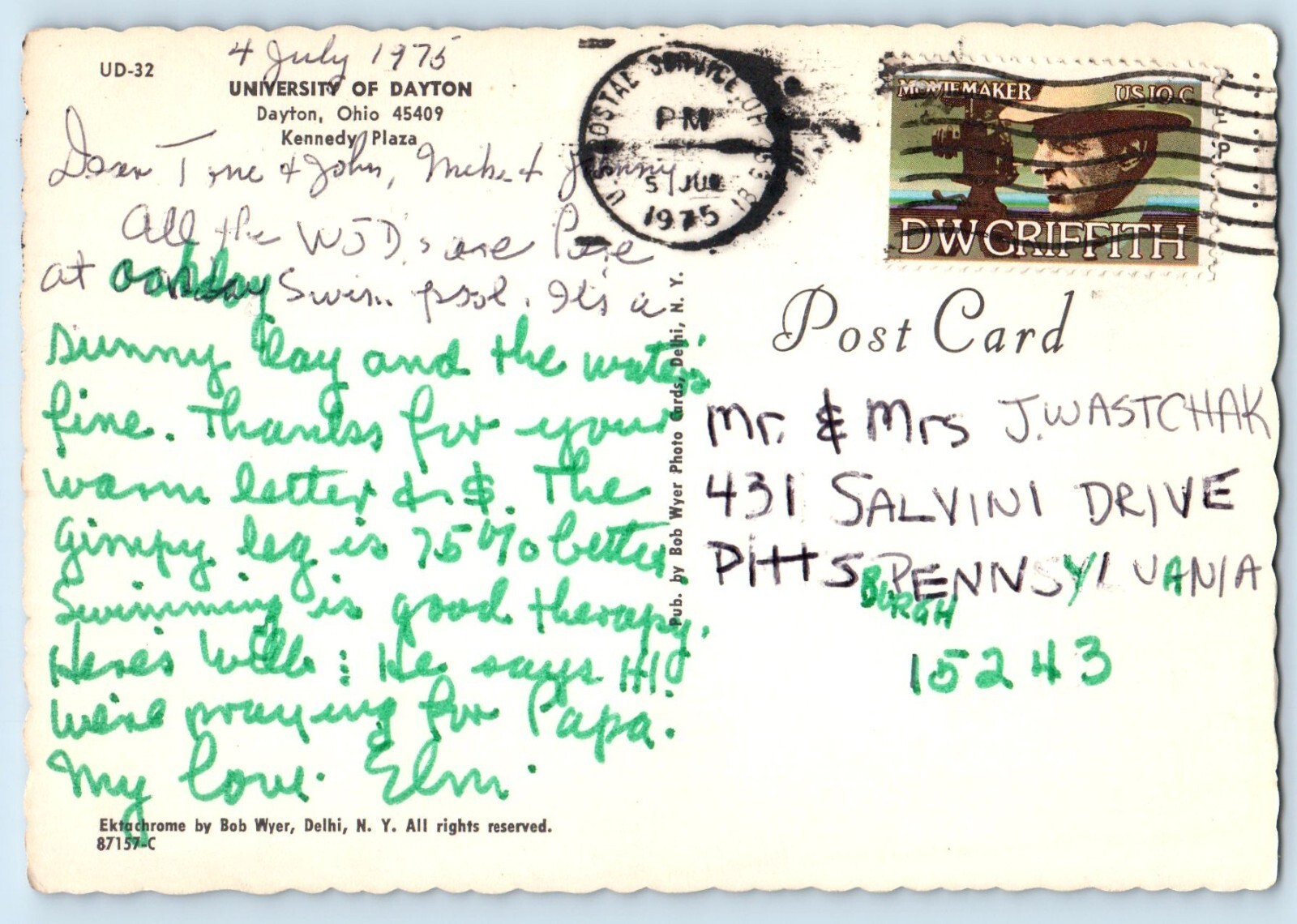 1975 Dayton Ohio OH Vintage Postcard University School Building Kennedy Plaza