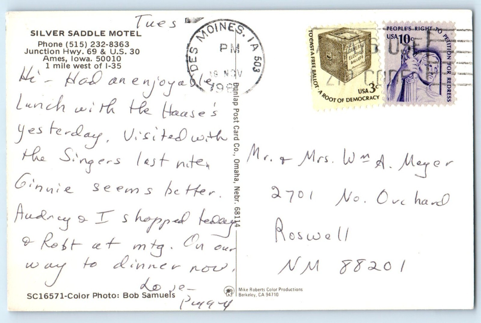 1981 Ames Iowa Postcard Silver Saddle Motel Junction Highway 69 Lodge Multiview