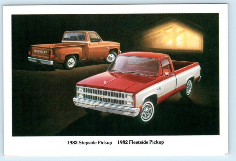 1982 CHEVY TRUCKS ~ Stepside & Fleetside PICKUPS Advertising Chevrolet Postcard