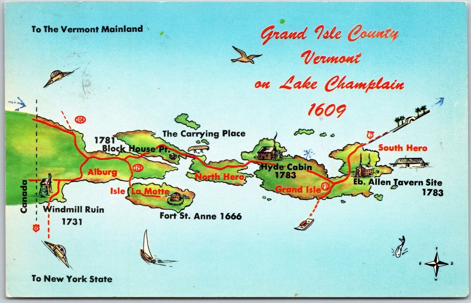 1985 Champlain Island Vacaytion Land Grand Isle Country Vermont Map Postcard