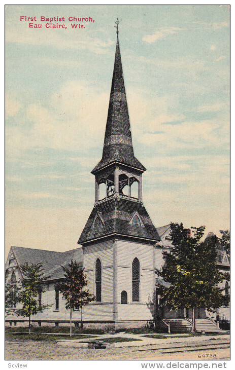 1st Baptist Church , EAU CLAIRE , Wisconsin , 00-10s :: Postcard , 3.5 by 5.5" , Litho , EX
