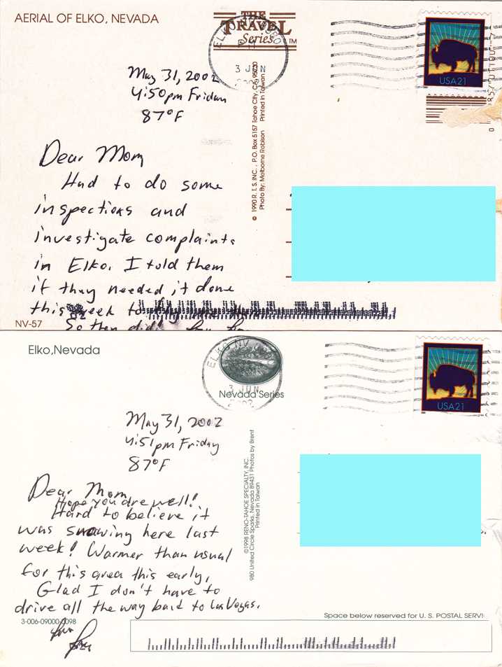 Both cards mailed at Elko on June 3, 2002.