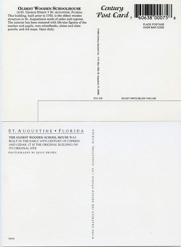 (2 cards) Oldest Wooden School House - Saint Augustine, Florida
