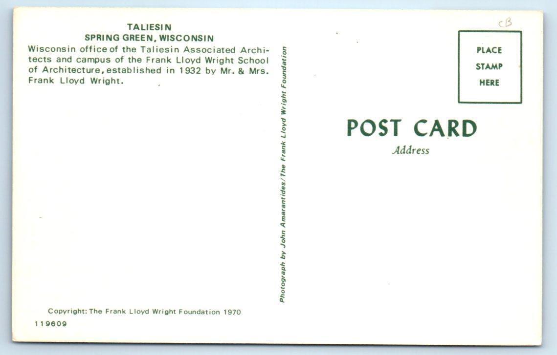Iowa County location where Frank Lloyd Wright trained aspiring architects Please Add me to your Favorite Sellers and feel free to email me with questions about item conditions as I try to describe them accurately. Please Visit My Hip Store, new items are added every week. FREE SHIPPING within the U.S. - International Buyers pay $2.00 shipping. 2 Postcards SPRING GREEN, Wisconsin WI ~ TALIESIN ~ FRANK LLOYD WRIGHT Studio 2 Postcards SPRING GREEN, Wisconsin WI ~ TALIESIN ~ FRANK LLOYD WRIGHT Studio Click image to enlarge Description Iowa County location where Frank Lloyd Wright trained aspiring architects Please Add me to your Favorite Sellers and feel free to email me with questions about item conditions as I try to describe them accurately. Please Visit My Hip Store, new items are added every week. FREE SHIPPING within the U.S. - International Buyers pay $2.00 shipping. Pictures sell!Auctiva offers Free Image Hosting and Editing.300+ Listing Templates!Auctiva gets you noticed!The complete Hip Selling Solution.Track Page Views WithAuctiva's Counter