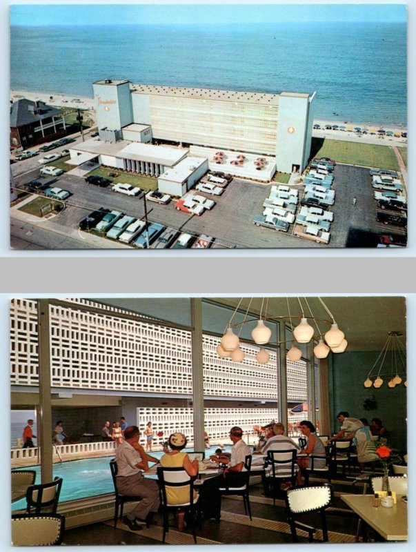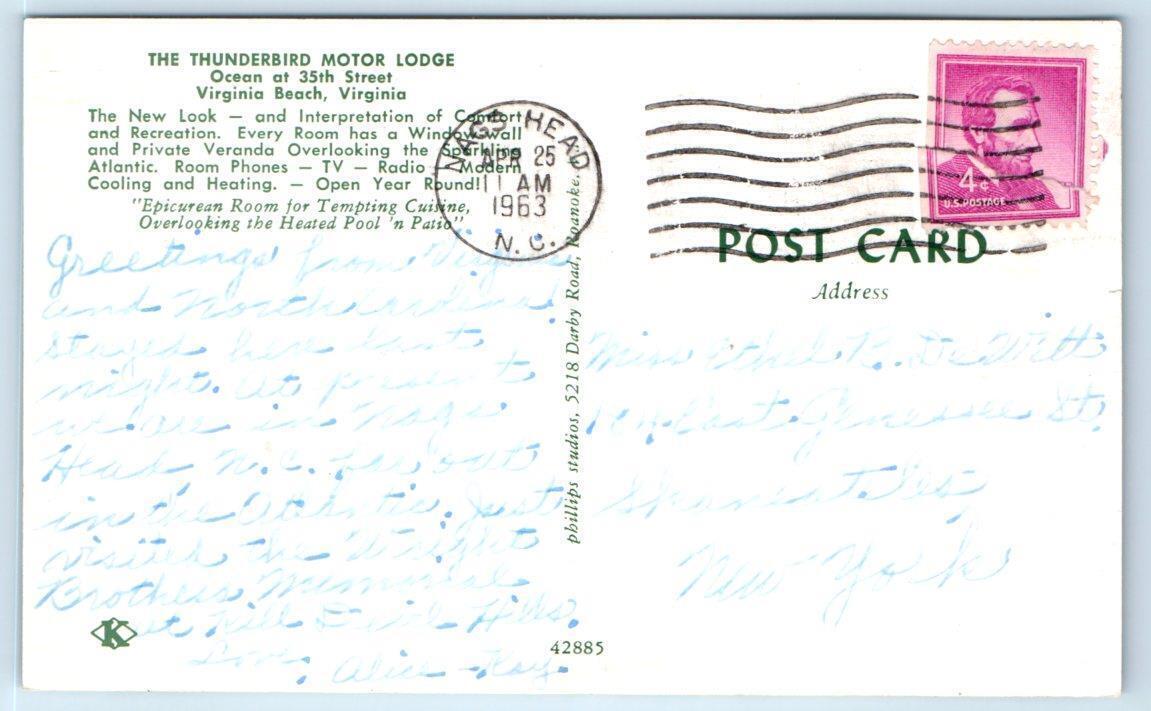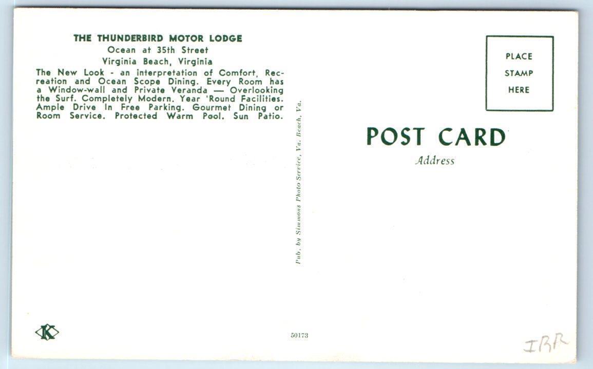2 Postcards VIRGINIA BEACH, VA ~ Roadside THUNDERBIRD MOTOR LODGE Pool c1960s