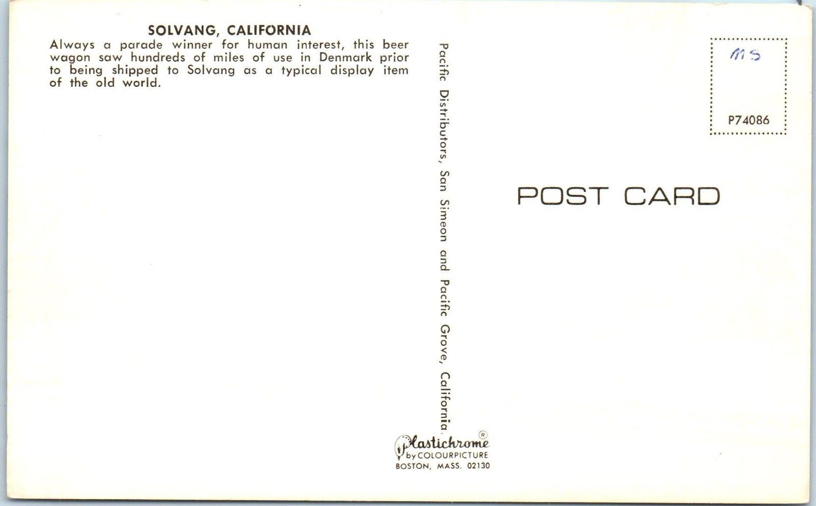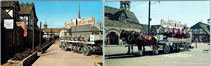 2 SOLVANG, CA Postcards CARLSBERG BEER WAGON c1960s