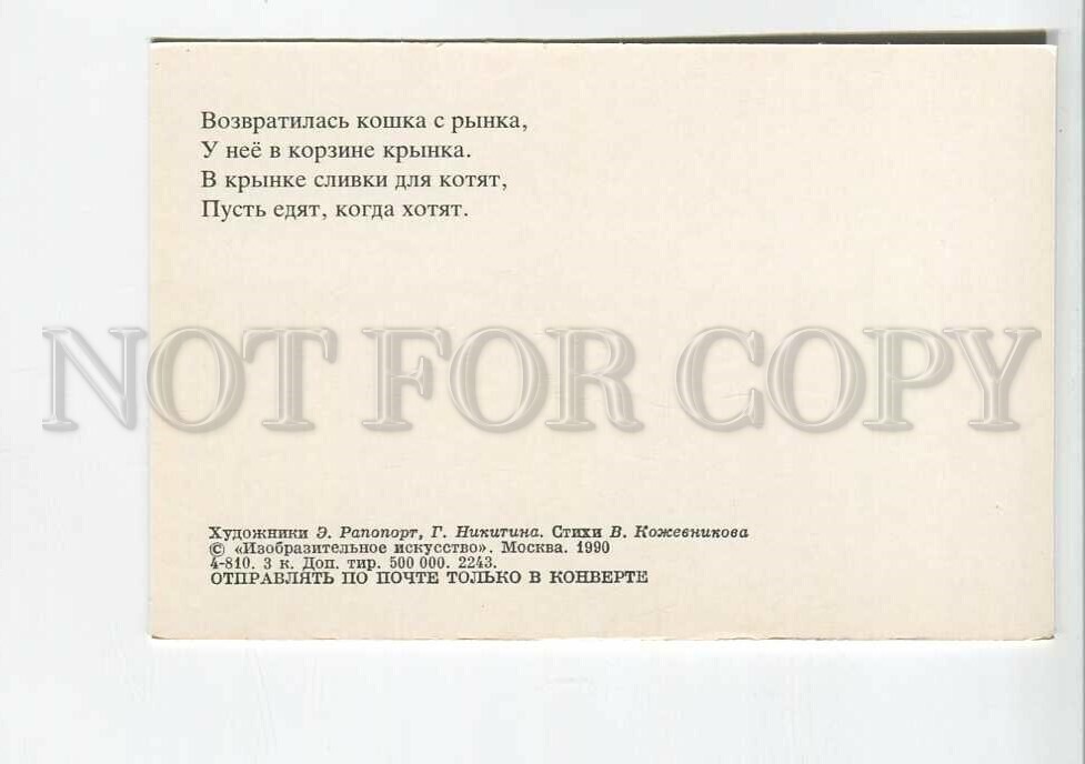 Russia Alphabet Cat by Rapoport Old Postcard Description: >>> Age: Original old inform card 1990 year >>> Approx.Size: 5.5X3.5 inches (14X9 cm) >>> Publisher: Izobrazitelnoye Iskusstvo - Fine Art - USSR R ... Read More