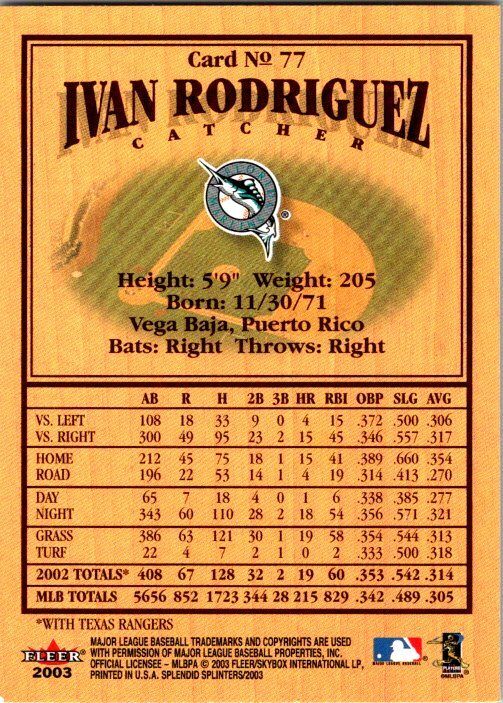 2003 Fleer Baseball Card Juan Rodriguez Florida Marlins sk20108