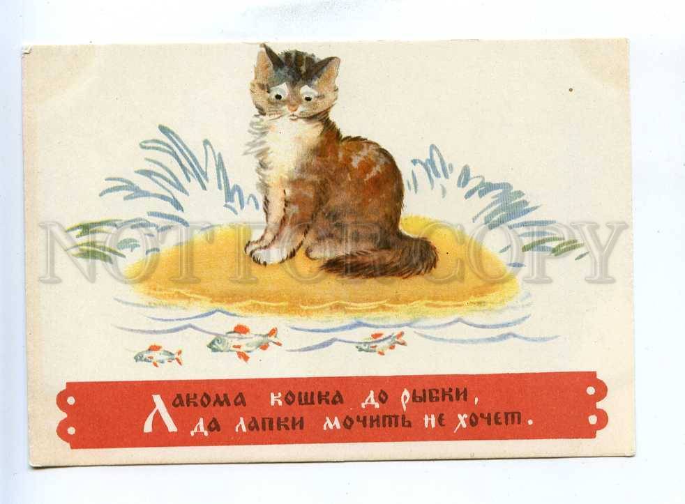 Russia Cat & Fish by Dudnikov Old Postcard Description: >>> Age: Original old postcard 1963 year >>> Approx.Size: 6X4 inches (15X10 cm) >>> Publisher: IZOGIZ - USSR Russia >>> Series# - >>> NUMBER# 19 ... Read More