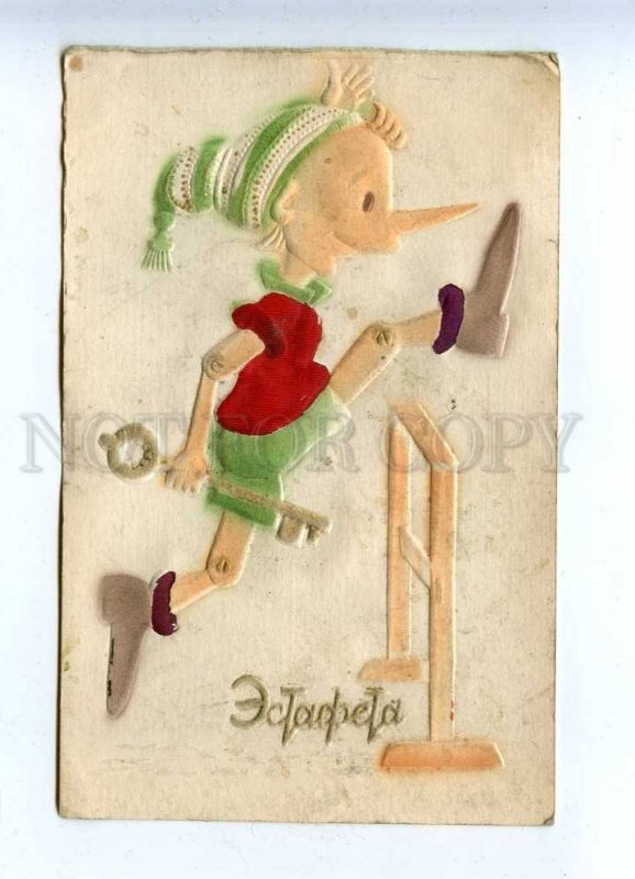 201643 RUSSIA Pinocchio Vintage embossed postcard