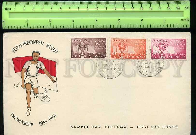 INDONESIA BADMINTON 1958 YEAR FDC Original old COVER in very good condition. We send only by airmail registered letter with tracking number. We can combine some orders to save your money on shipping. If you buy 10 o ... Read More