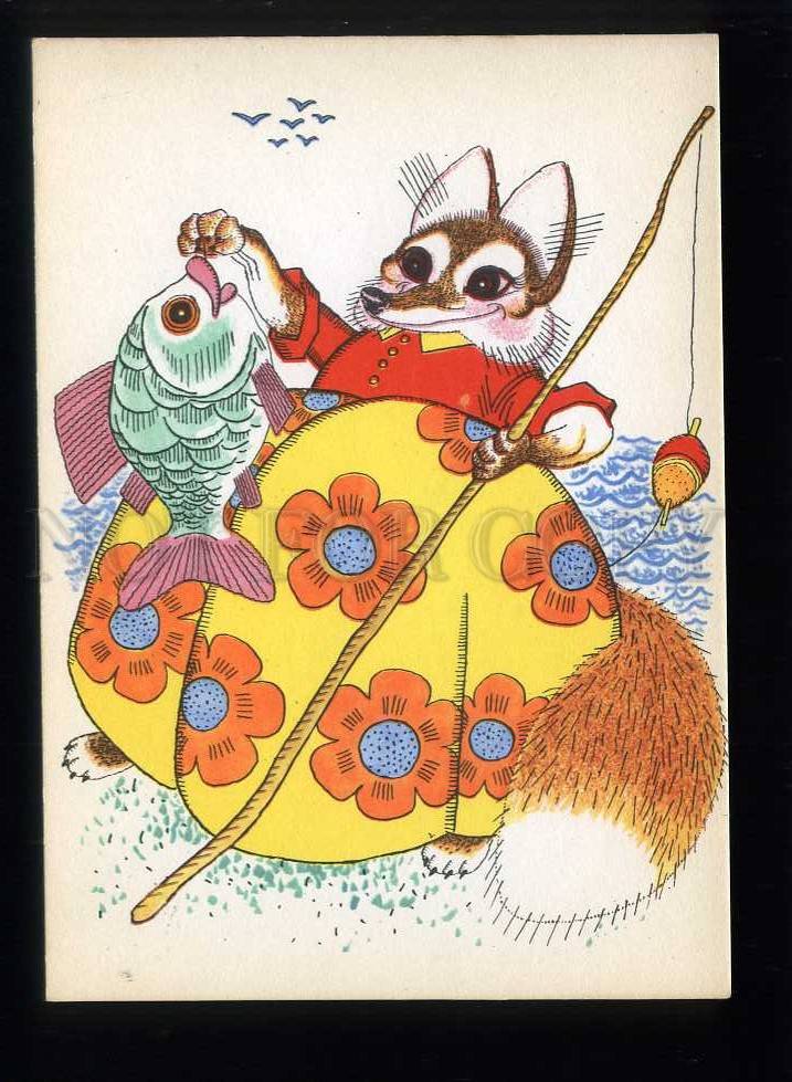 >>> Caption: RUSSIA Golubev dressed fox & fish old postcard