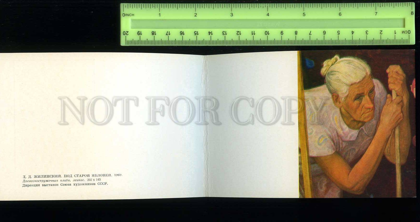 >>> CAPTION: RUSSIA Zhilinskiy under old apple tree semi-nude boy Socialist Realism folding postcard