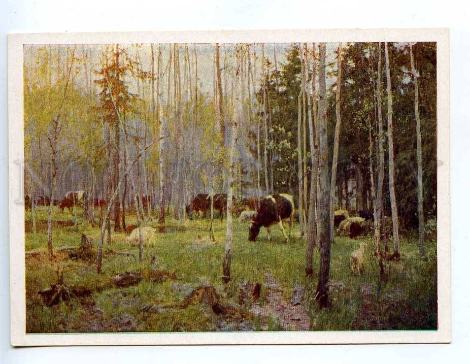 >>> Caption: RUSSIA GRITCAY first grass cows old postcard