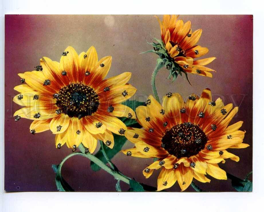 >>> Caption: GERMANY sunflowers with applique old postcard