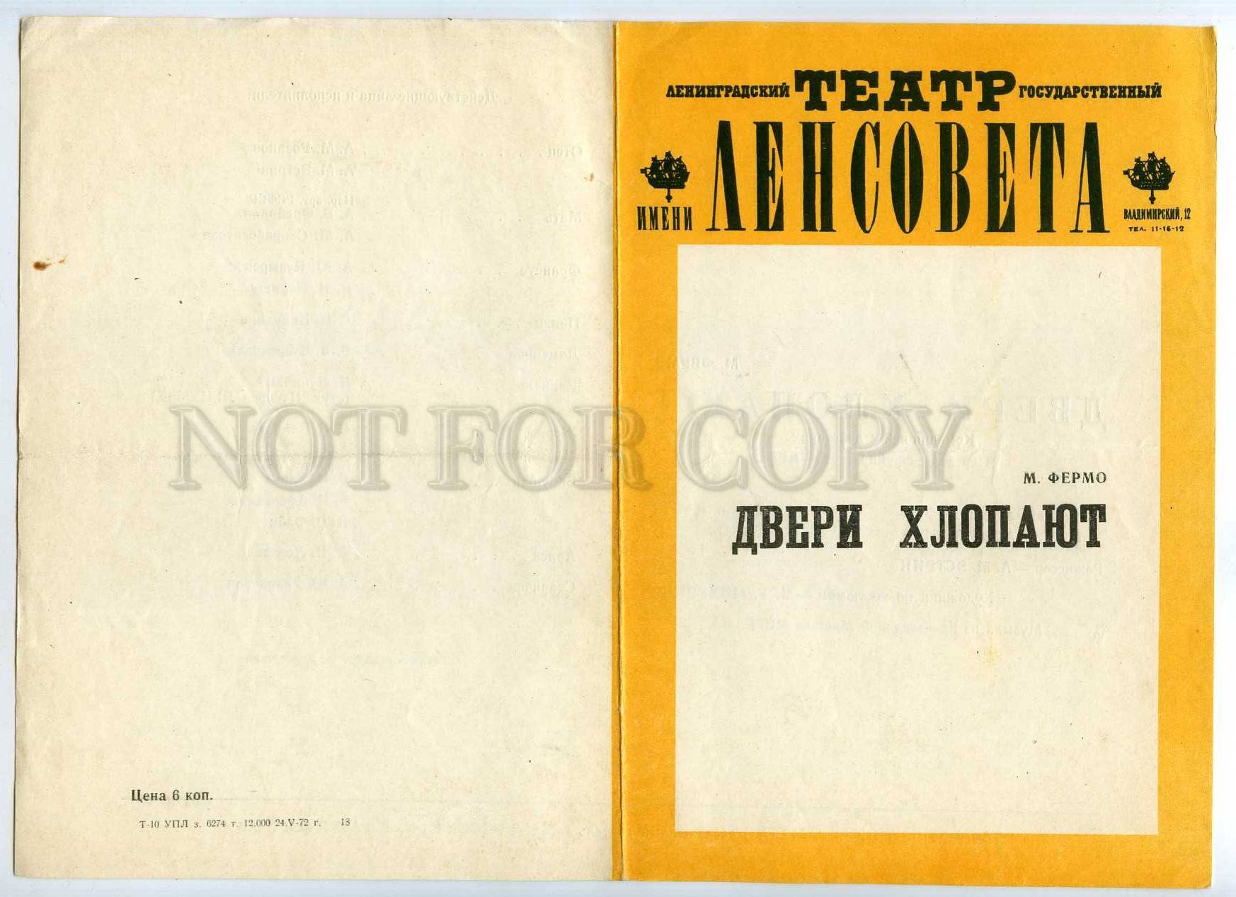 255567 USSR Fermo Doors slam 1972 year theatre Program