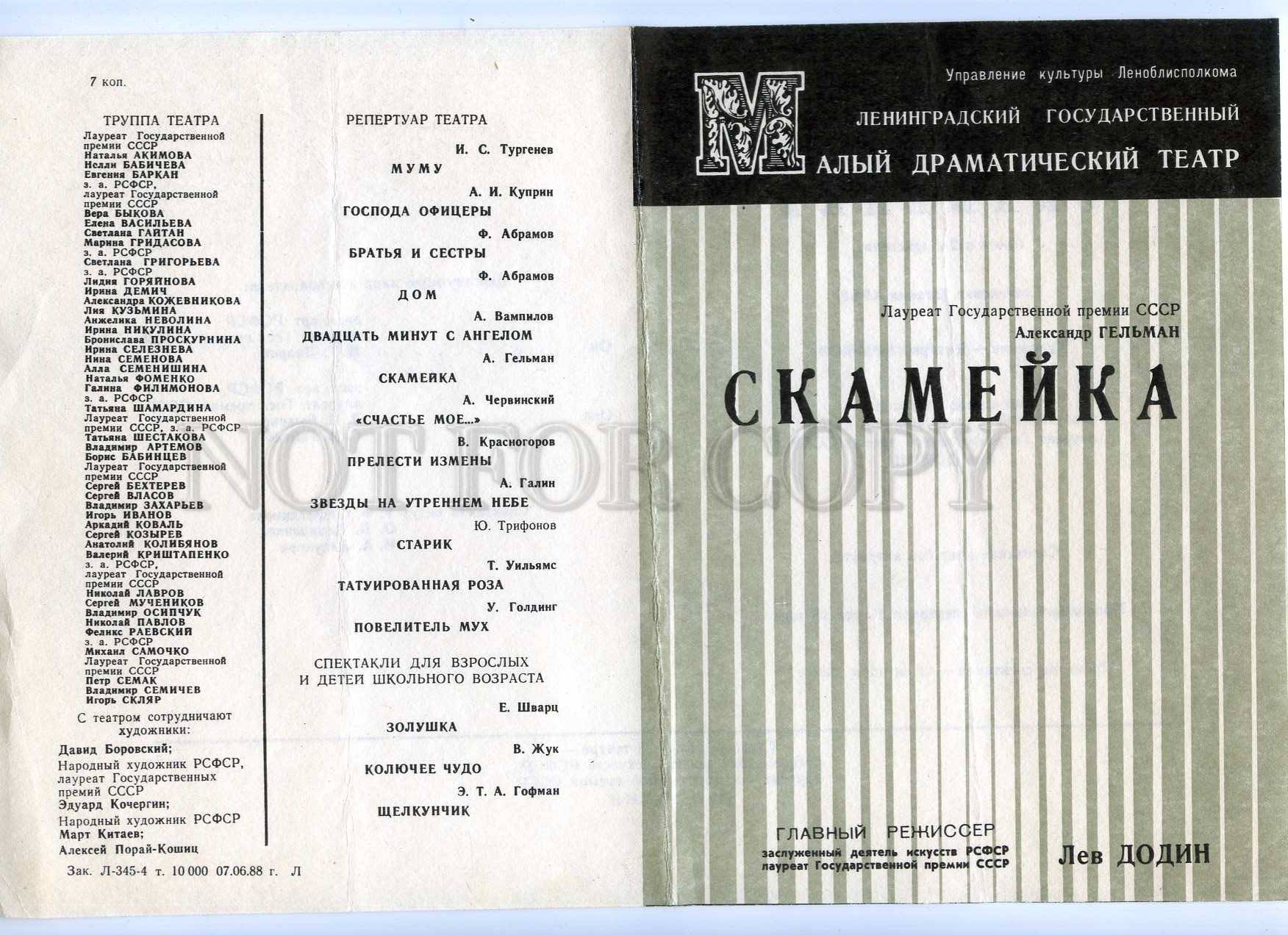 USSR GELMAN BENCH 1988 YEAR THEATRE PROGRAM