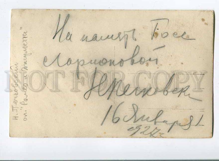 Autograph for memory tosya lorionova n. Pechkovsky 1927 year - opera romeo and juliet - vintage original old postcard in excellent condition, for more information, see scans please. Publisher without mark of photographer bulla leningrad russia. Approx.Size: 5.5x3.5 inches (14x9 cm)