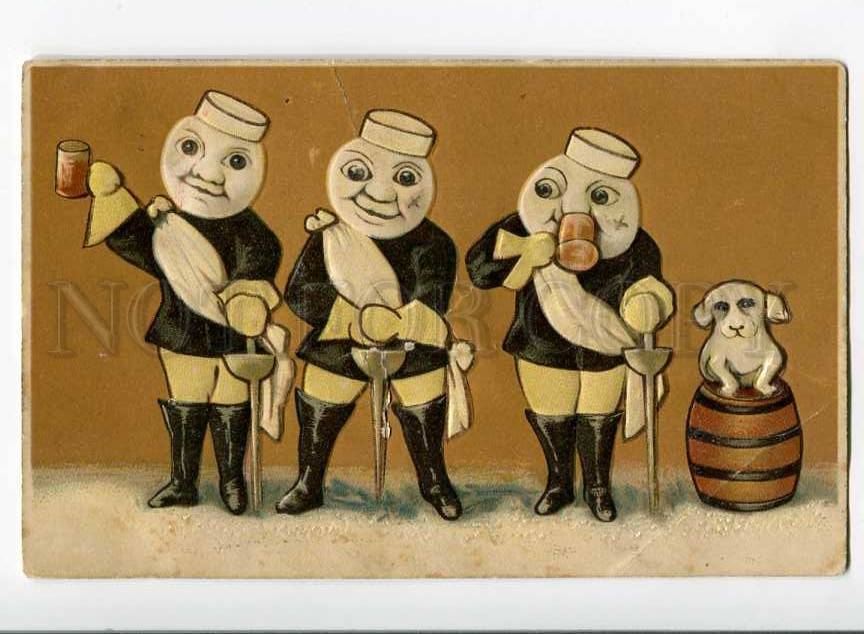263637 EASTER Sport FENCING Dressed EGGS Vintage EMBOSSED PC