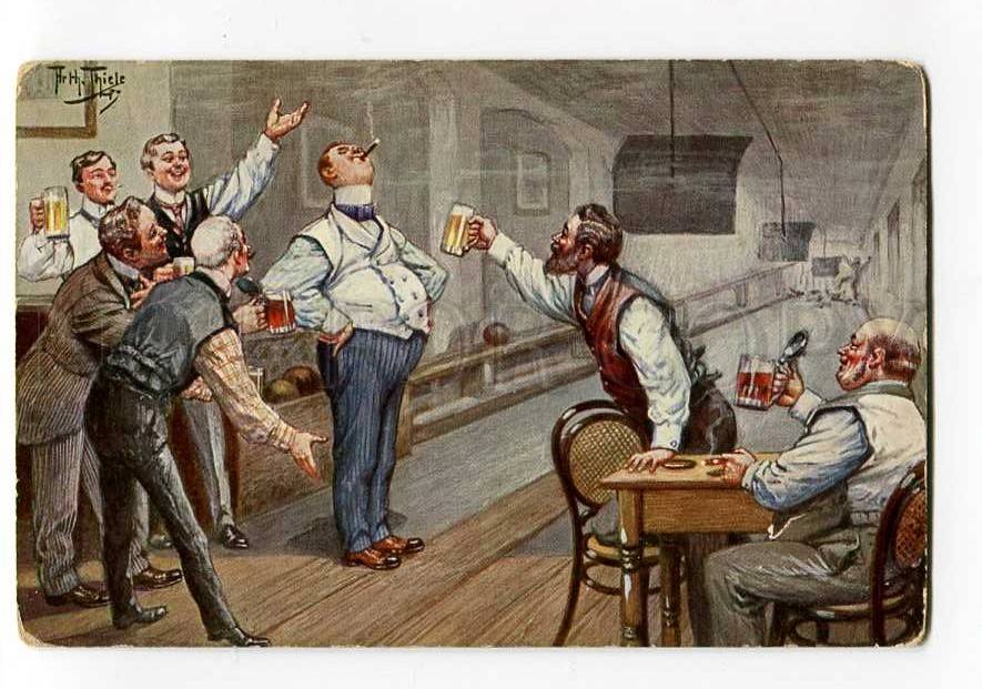 Comic bowling drunk men by arth. Thiele vintage tsn pc