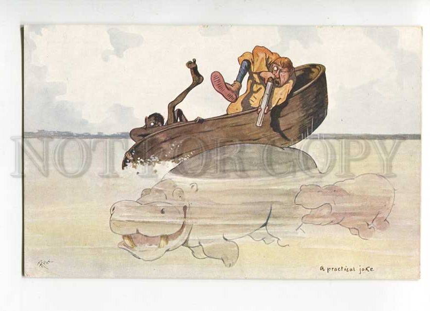Comic hunt hippopotamus hippo black hunter by pick old Practical joke - vintage original old postcard in excellent condition, for more information, see scans please. Publisher b.K.W.I. #954-11. Approx.Size: 5.5x3.5 ... Read More