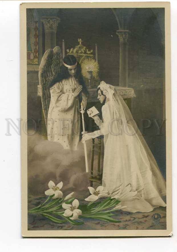 Winged angel & bride in church vintage photo tinted pc Vintage original old postcard in excellent condition, for more information, see scans please. Publisher ch. Fontane paris croissant #3091. Approx.Size: 5.5x3.5 ... Read More