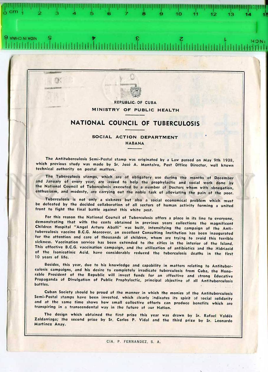 CUBA STAMP 1954 YEAR FIRST DAY PAGE TUBERCULOSIS Original old souvenir page first day of issue stamp (without stamps) In excellent condition, for more information, see scans please. We send only by airmail registere ... Read More