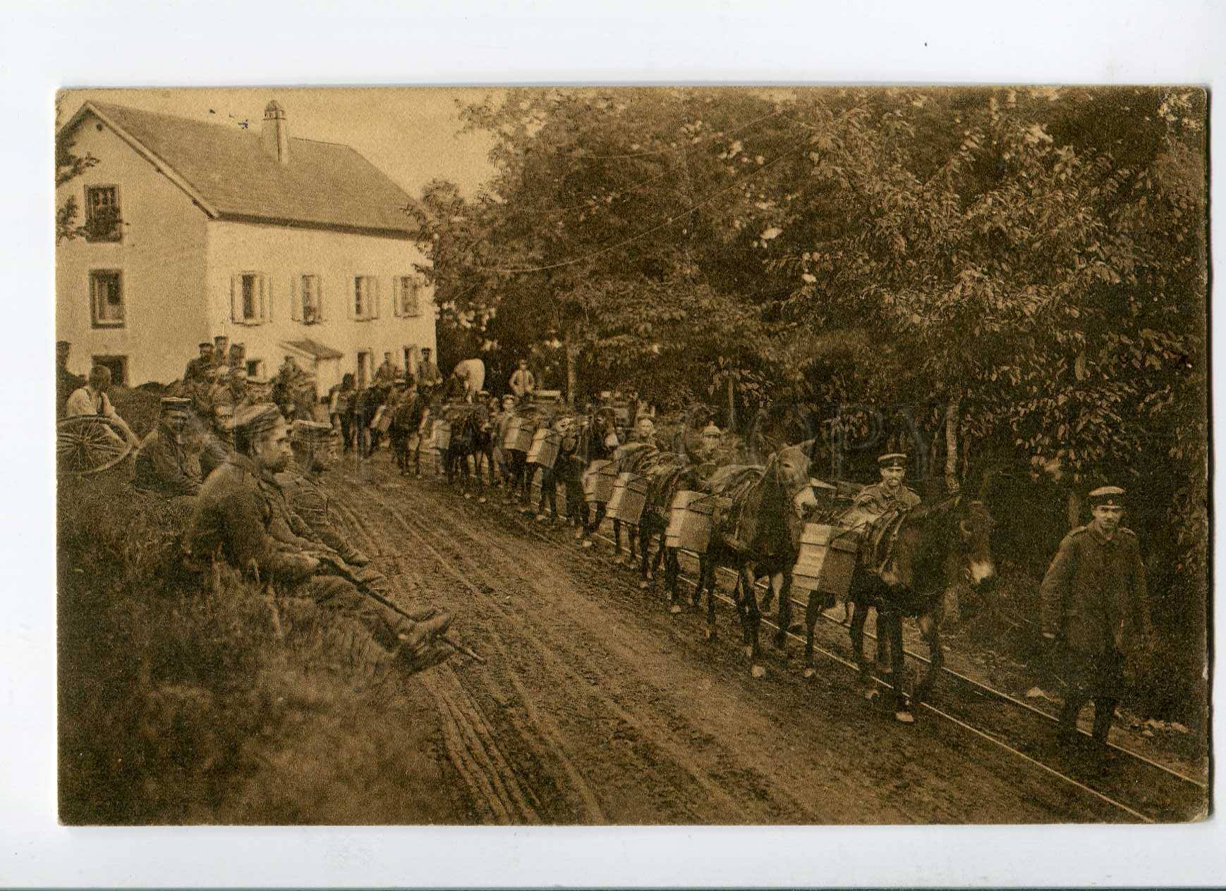 Wwi germany essein ammunition columns war old feldpost Aus den vogesen gebirgsbatterie-munitionskolonnen holen munition auf esein - vintage original old postcard in excellent condition, for more information, see sca ... Read More