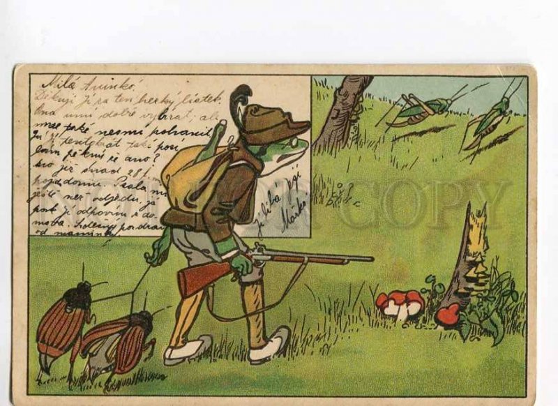 Hunt dressed frog hunter grasshopper vintage 1900 year Vintage original old postcard in very good condition, for more information, see scans please, has a small bend of one corner. Postal used in 1900 year praha. Ap ... Read More