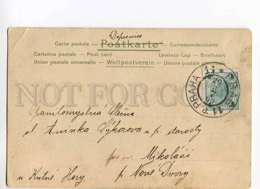 Vintage original old postcard in very good condition, for more information, see scans please, has a small bend of one corner. Postal used in 1900 year praha. Approx.Size: 5.5x3.5 inches (14x9 cm)