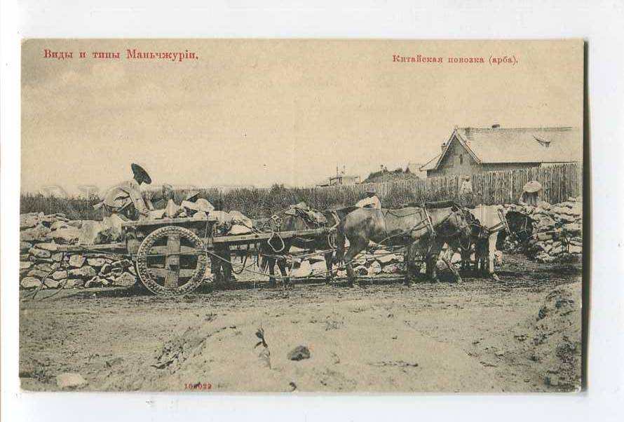 >>> CAPTION: CHINA Types and types of Manchuria Chinese carriage Vintage postcard military postmark Russo-Japanese War 1 battalion of the 4th Infantry Regiment of the Koporsky Regiment