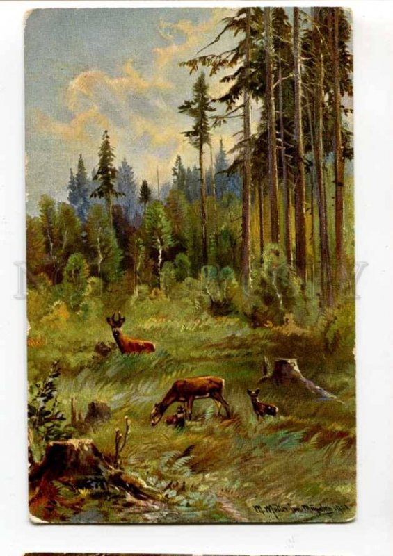 288488 Mueller MULLER Summer Hunt DEER Vintage postcard