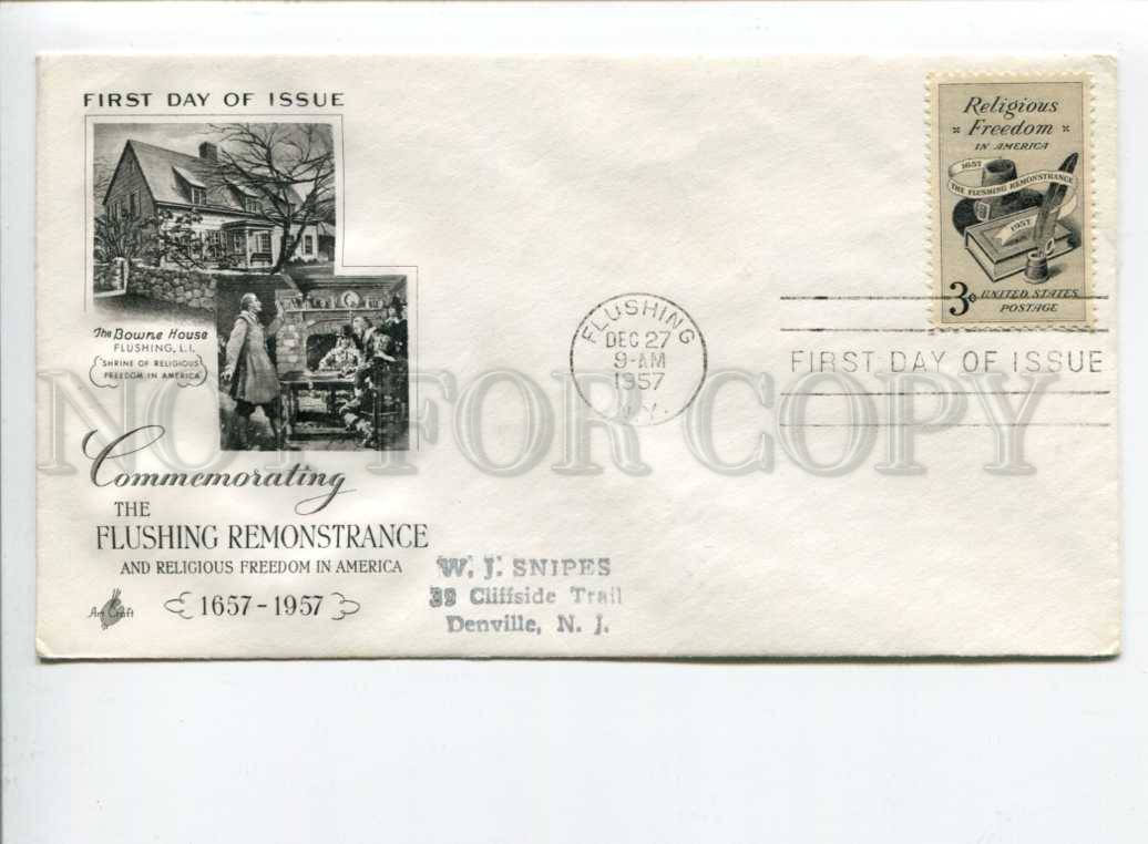 >>> Caption: USA 1957 First Day COVER Flushing Remonstrance
