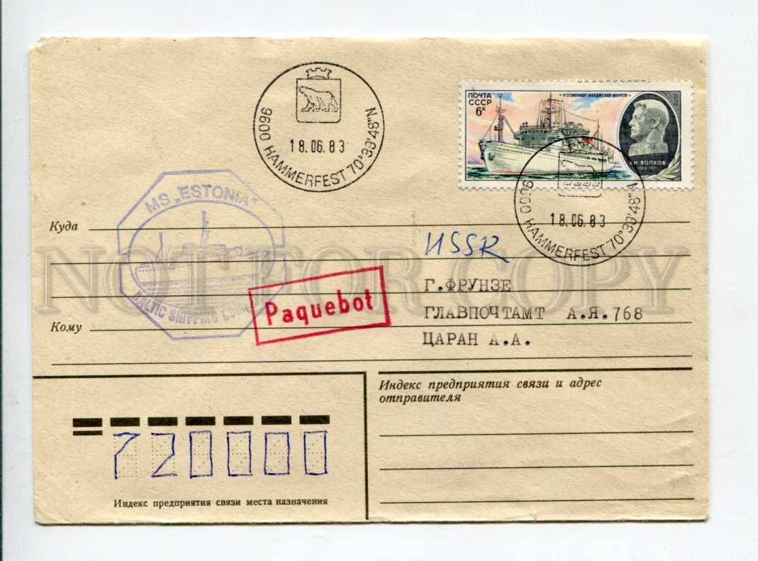 >>> POSTALLY USED: special cancellations shipping postage Baltic Shipping Company motor ship Estonia Norway Hammerfest 1983 year