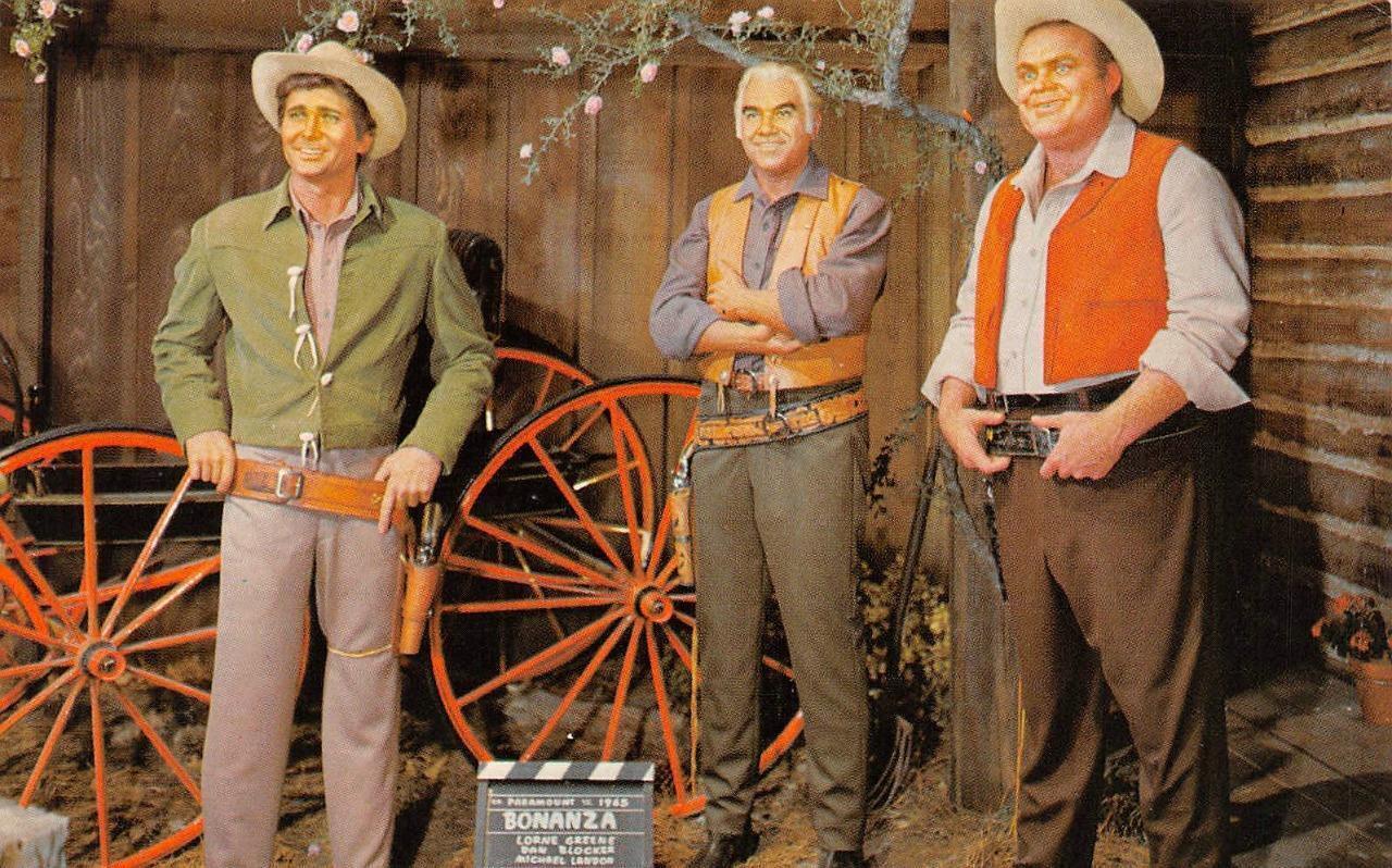 2~postcards nv nevada ponderosa ranch~bonanza tv show & wax cartwright family